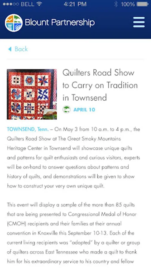 Use this free app to access news and to navigate the Blount Chamber economic development information, member business and upcoming area events for Blount County. The app also links you to the Blount Partnership websites and social pages.