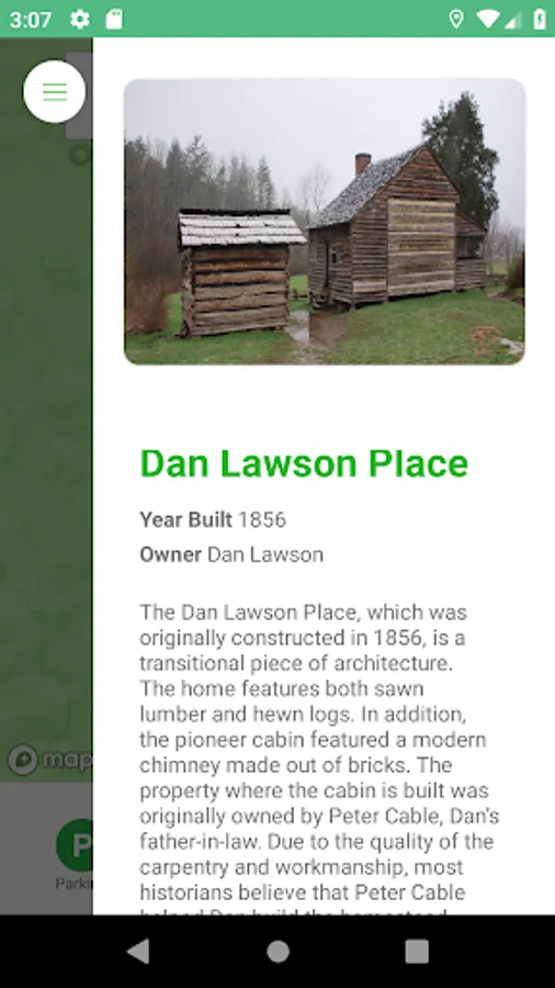 Find your position within Cades Cove even offline. The data in this app is available offline, and your phone uses its built-in GPS to show your location.