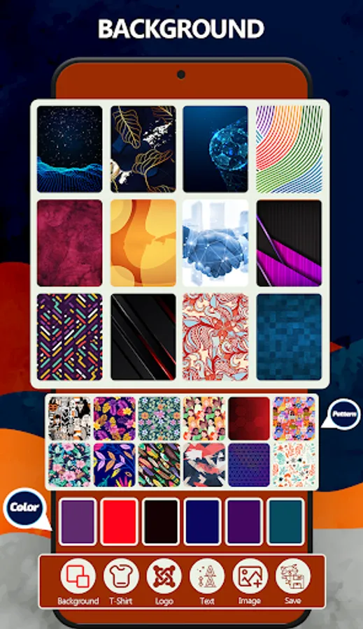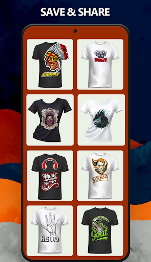 T-shirt design app has tons of Arts, Colors, T_Shirts & Textures.