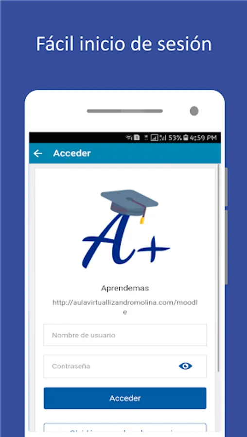 NOTE: This official Moodle Mobile App will only work with Moodle Aprendemas hosted domain aulavirtuallizandromolina.com/moodle/ Moodle site has been configured to allow it.