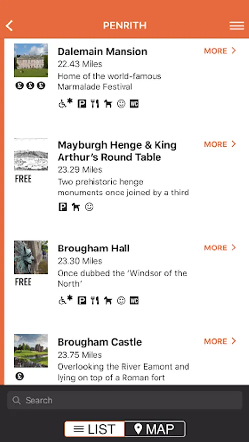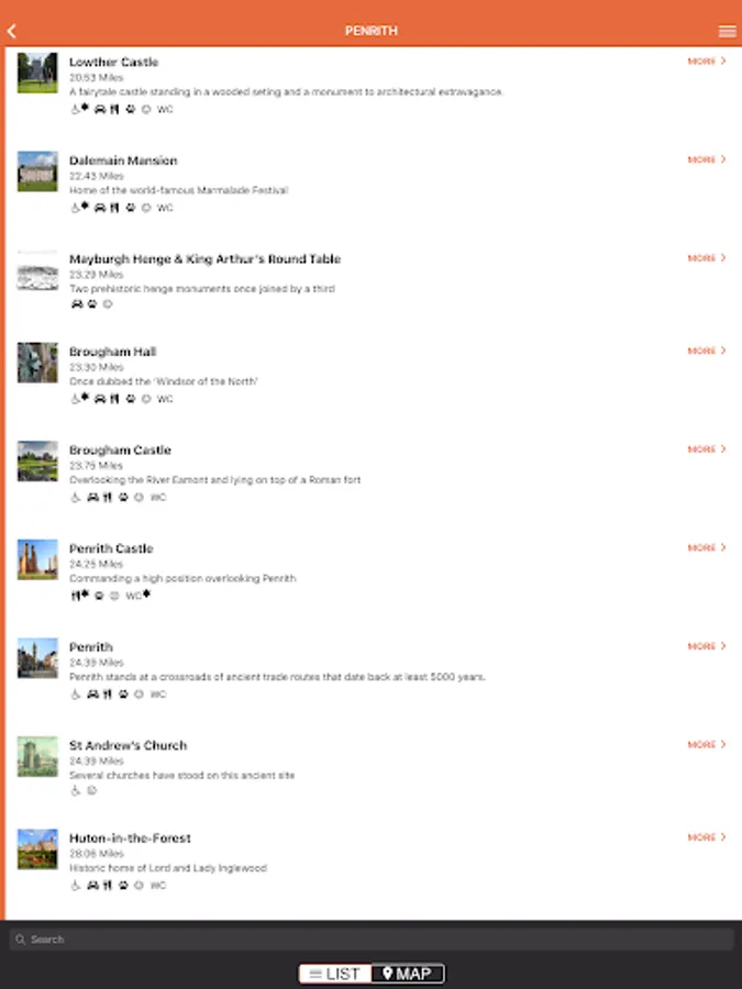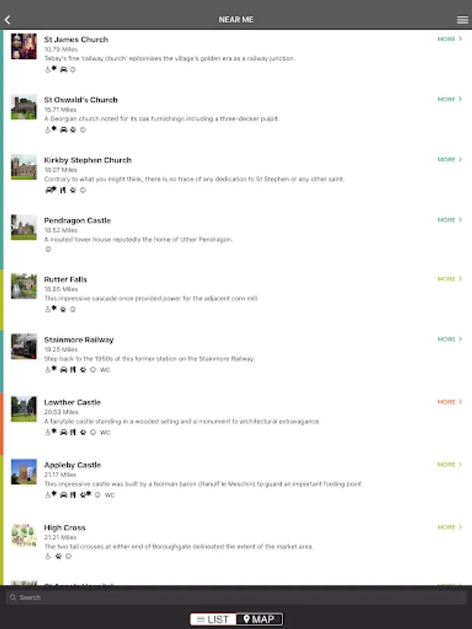 The App has a list and map view and contains filters for key features such as accessibility, parking and family friendly.