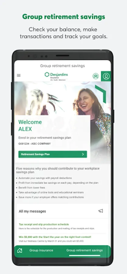 With the Omni app, you can manage your Desjardins group insurance and retirement savings accounts in one place.