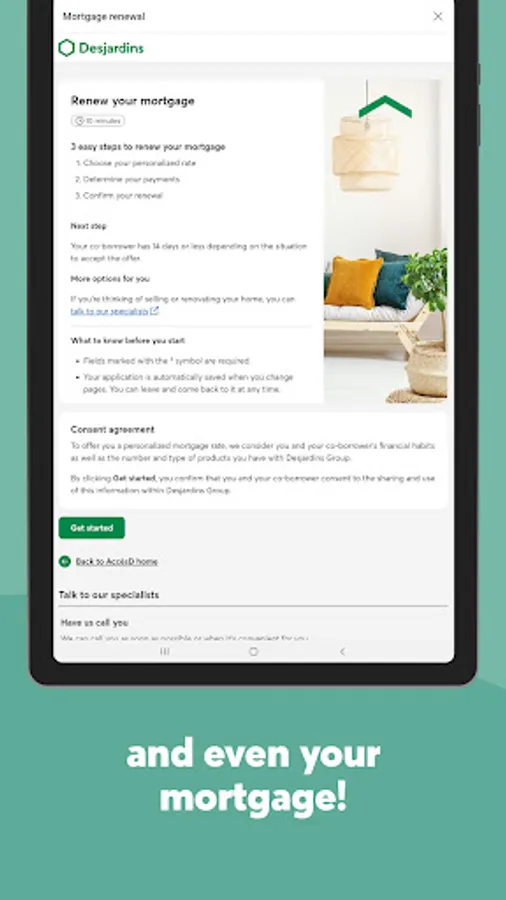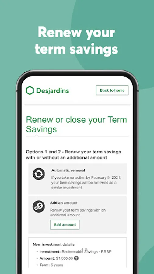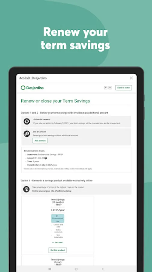 For more information about the applicable terms and conditions, please see the Terms of use and legal notes section (desjardins.com).