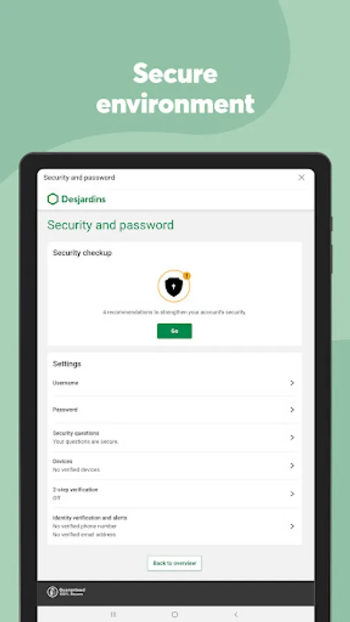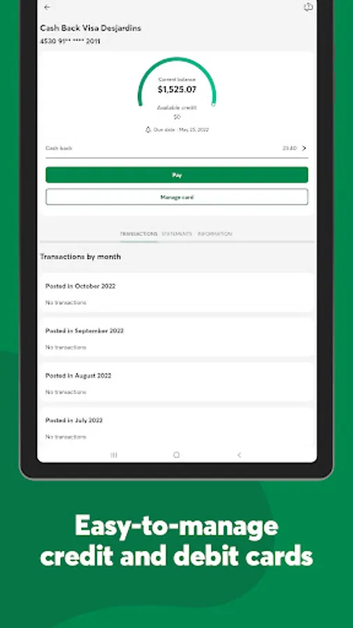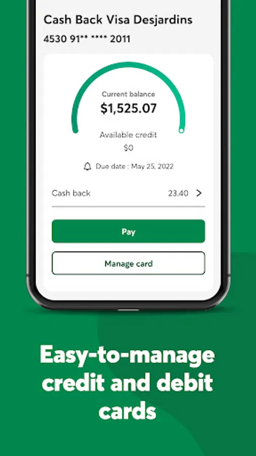 By downloading the Desjardins mobile services app, you consent to the installation of the application and updates, which can be automatically installed depending on the default settings of your device or operating system, or the settings you selected. You may withdraw your consent at any time by uninstalling this application.