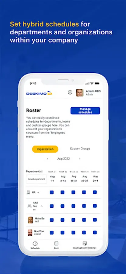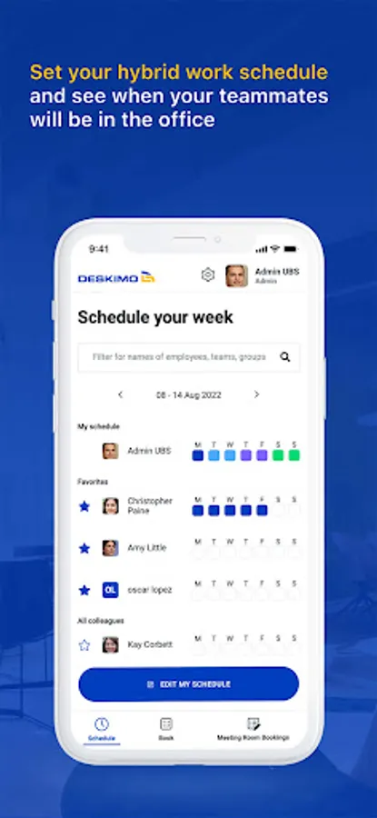Let your employees set their own hybrid work schedules and coordinate with their teammates to meet in person and book meeting rooms.
