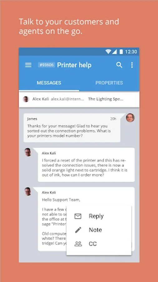 Deskpro for Android allows you to efficiently and effortlessly manage multichannel customer interactions from your mobile device, including the ability to:
