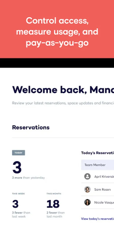 Members can work at the same space all month or someplace new every day, and book hourly desks, booths, team rooms, and conference rooms on demand.