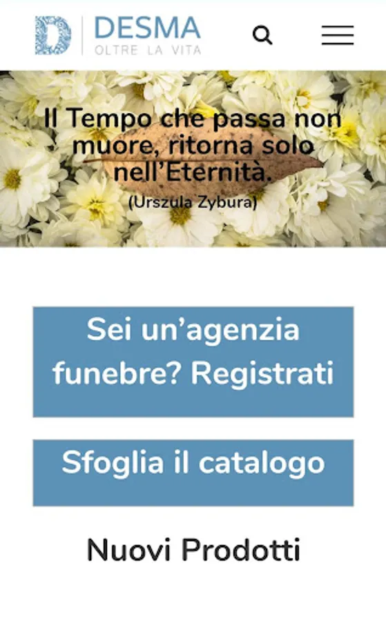 Browse the complete line of funeral products featured on the Desma s.r.l. application, register and log in to see prices and purchase.