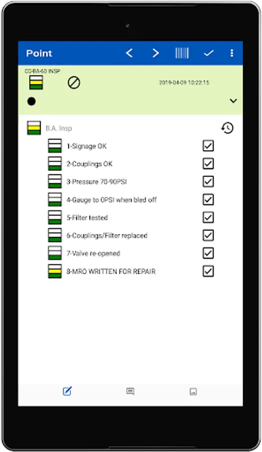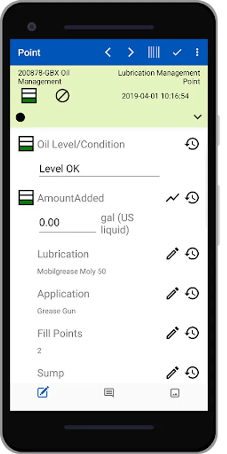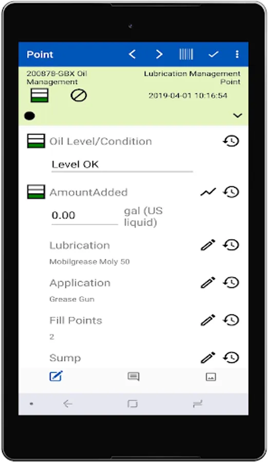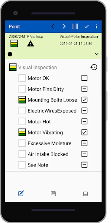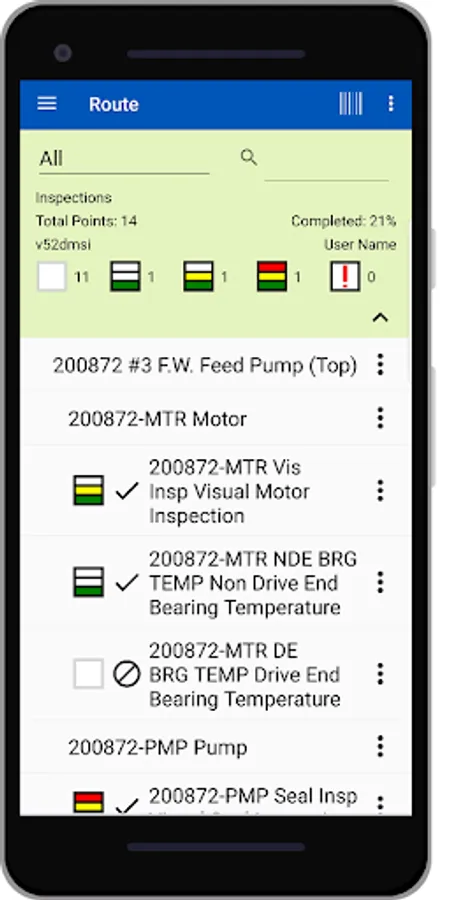 Asset Routes with predefined inspections are downloaded to the mobile device. The mobile devices use scanning technology, barcodes or NFC, to quickly identify the asset you are inspecting. The scanned tag automatically displays the inspection points associated with the asset. Your operator or field person can then enter values and observations. Once the Route is completed it is uploaded back to MAINTelligence™ for processing and assessment.