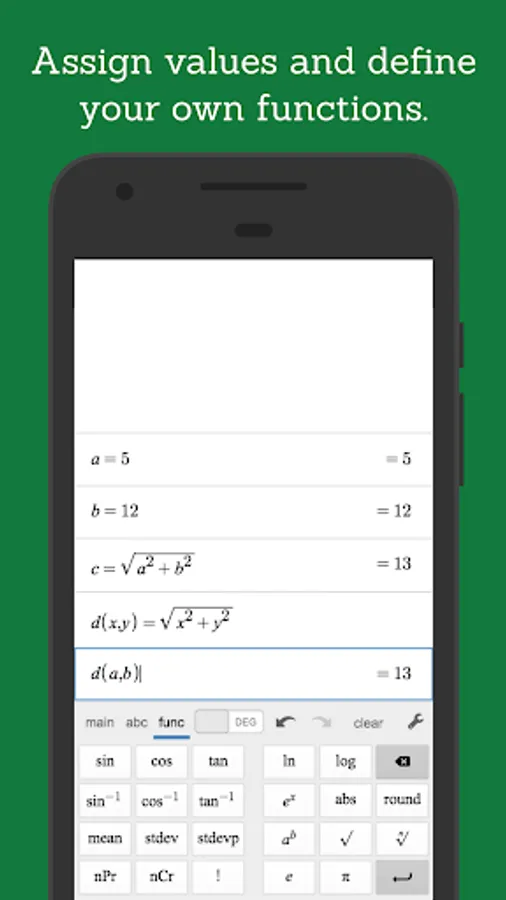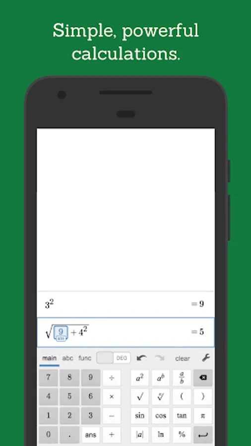 - View multiple expressions at once. Unlike many scientific calculators, all of your previous work remains visible on the screen.
