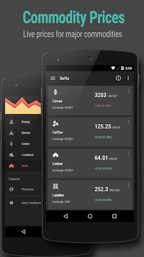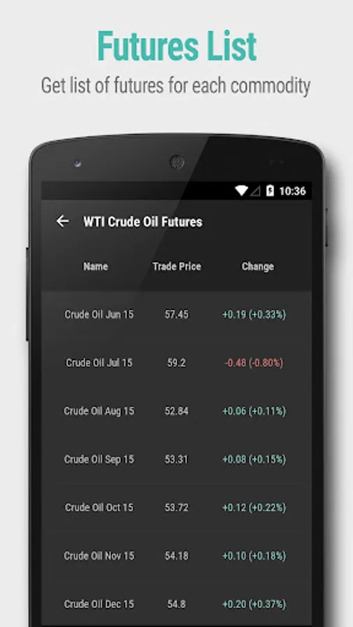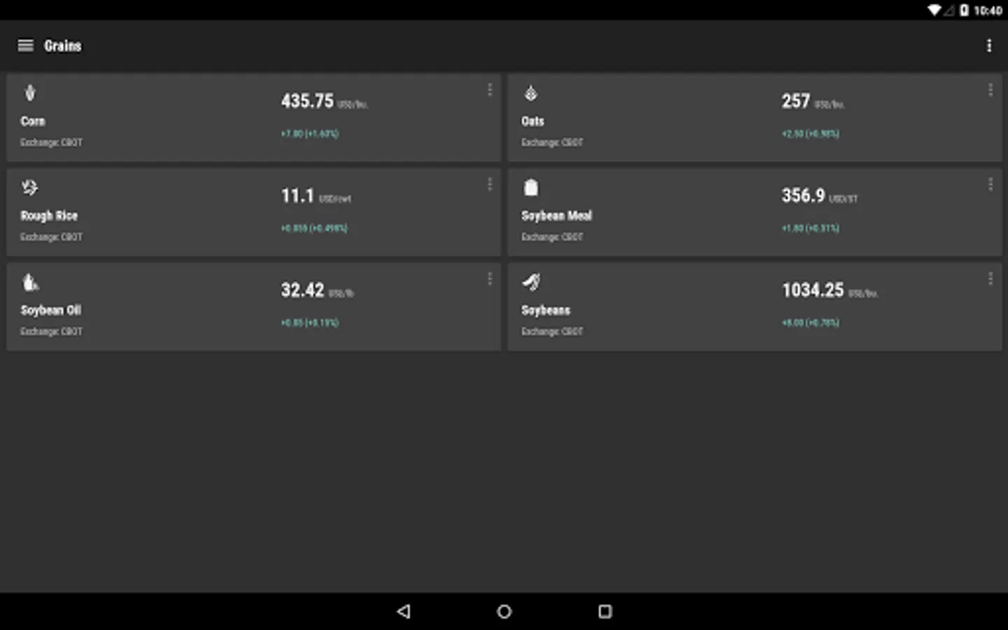 This app is informative resource available to those interested in commodity prices. Get instant access to free real-time quotes for the top energy, metals, grains and livestock commodities futures.