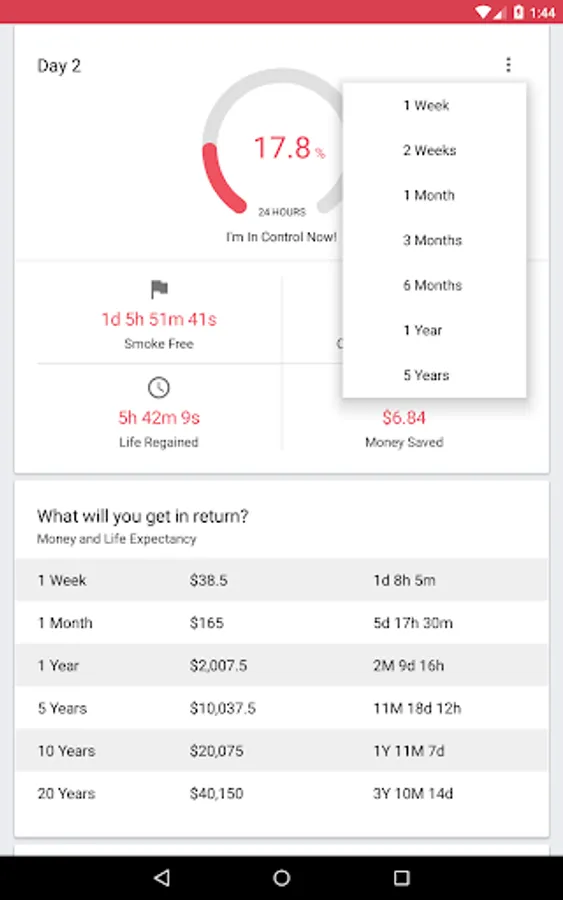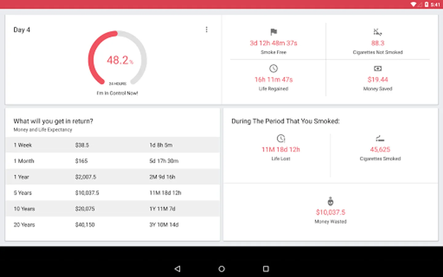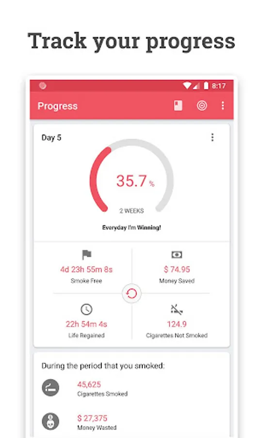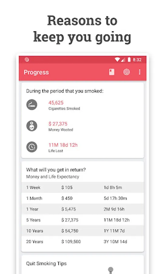 With Quit Tracker you can also see how much life you lost and how many cigarettes you smoked before quitting, but the you will also be able to see what type of rewards you can get if you stop smoking as well.