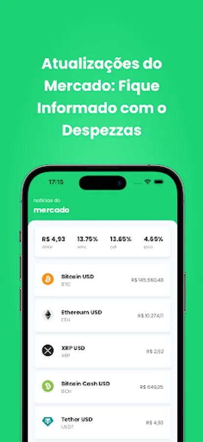 Details on Cryptocurrencies and Financial Indicators: Despezzas offers detailed information on cryptocurrencies, dollar, CDI, SELIC and IPCA, to help you make informed financial decisions. You can track up-to-date cryptocurrency prices, exchange rates and relevant financial indicators right in the app.