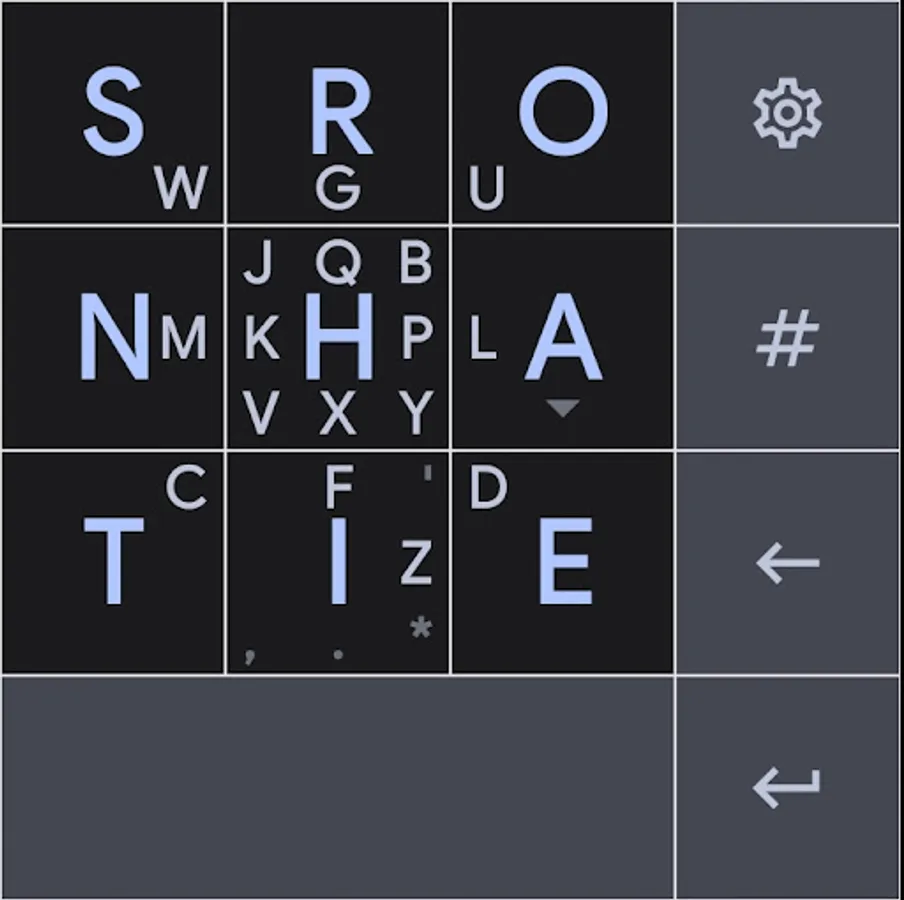 It features a 3x3 grid layout, and uses swipes for the less common letters. Its easy to learn, and designed for fast typing speeds.