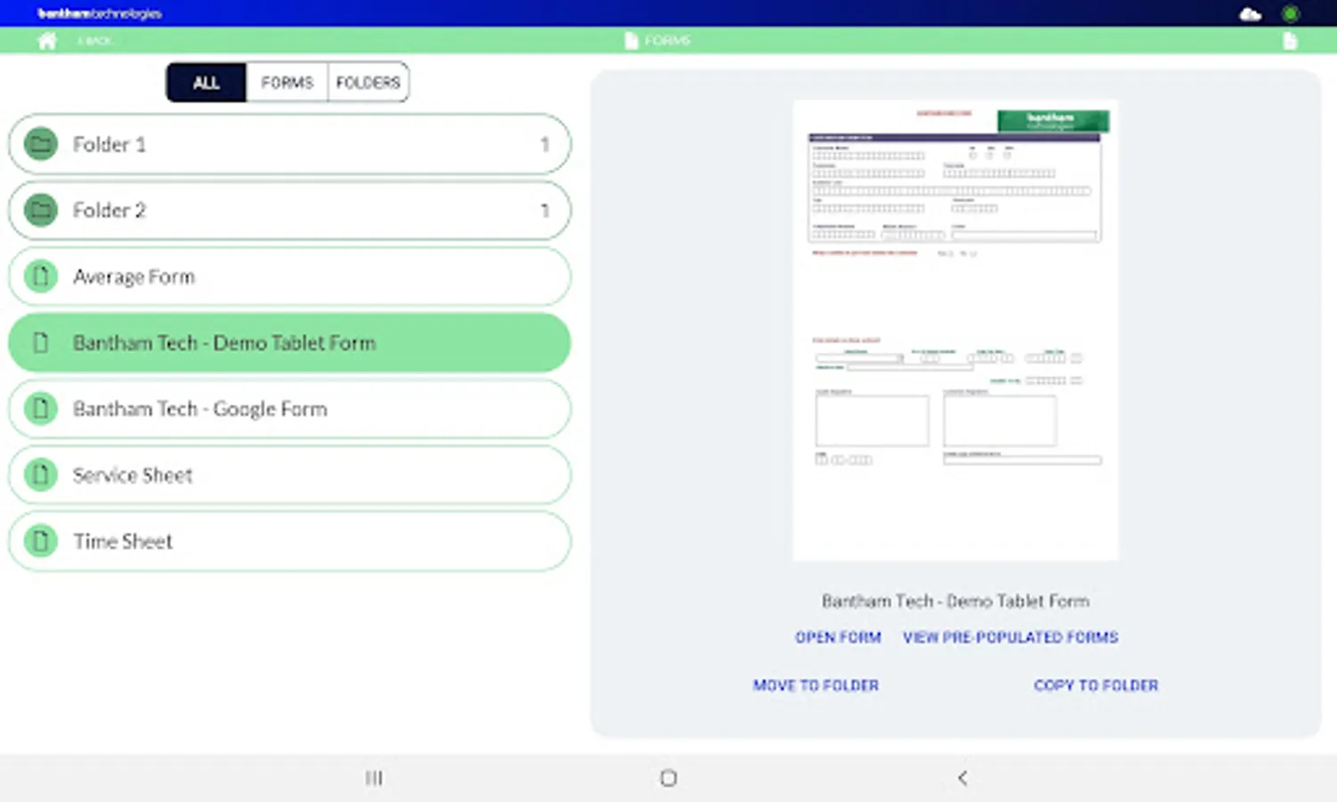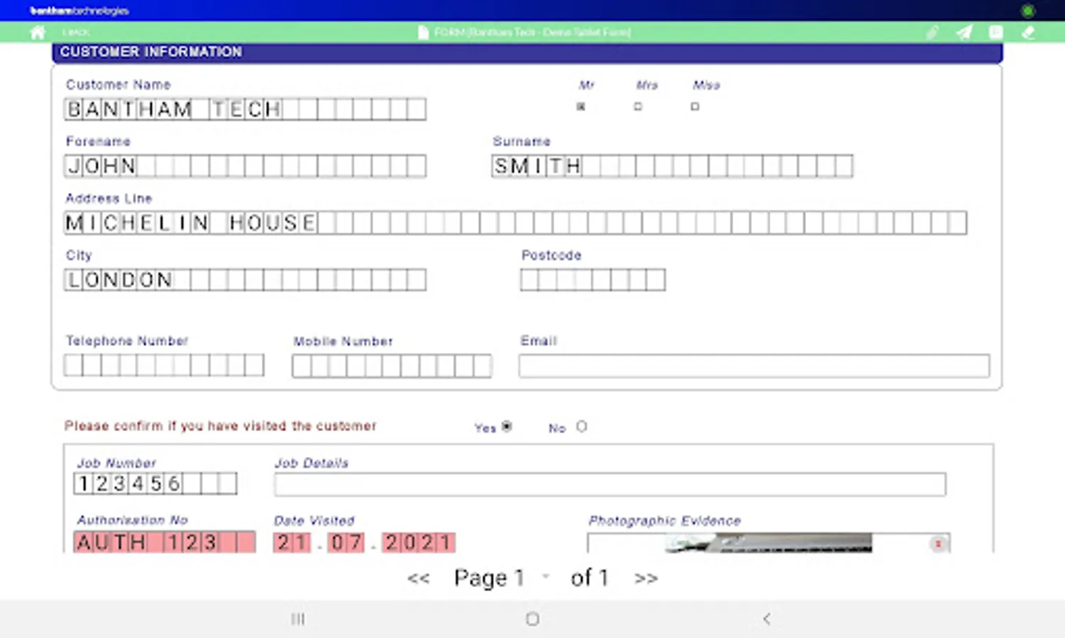 Building and managing your forms is easy. Using our Form Design Tool in the Bantham cloud, simply drag and drop, no coding or IT help required. Recreate your business forms with drop-down fields, radio buttons, checkboxes as well as date and time fields. Increase the speed and accuracy of your form completion by uploading existing business data with our pre-population feature.