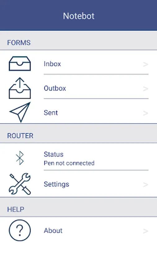 The NoteBot app will take the pen strokes from your Neolab Smart Pen, and organize it into manageable forms, with an Inbox, Outbox and Sent items history to allow you to track your work load.