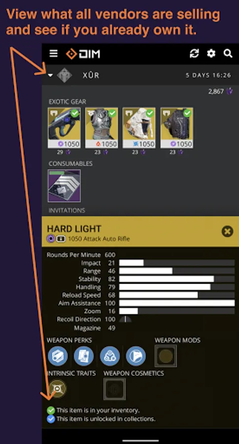 Forgot to grab your favorite hand cannon? Just tap and move it to your active character.