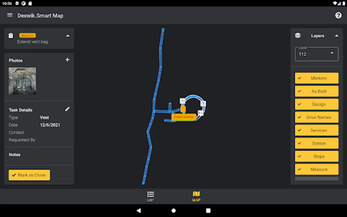 Save time in the mine by recording and tracking data on the go with Deswik.SmartMap. Select a location, add a map marker, assign a priority and take photos to scope and monitor issues.