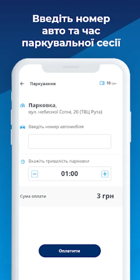- the ability to pay for the parking space of friends or acquaintances by entering only the parking code (or finding it on the map), car number and duration of parking,