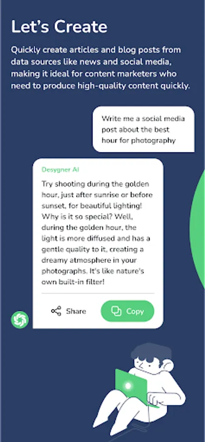 Equipped with cutting-edge machine learning algorithms, Chat AI understands your questions and generates human-like responses, making you feel like you are chatting with your knowledgeable friend. Our Chat AI app can also learn from your behavior and preferences, making it even more personalized and efficient over time.