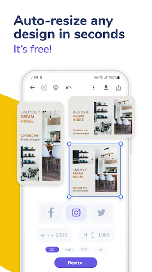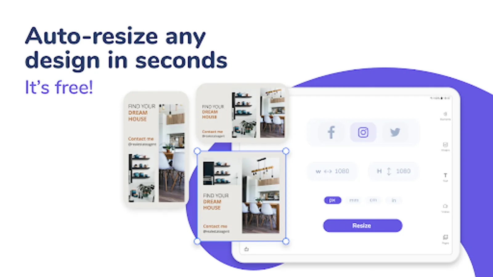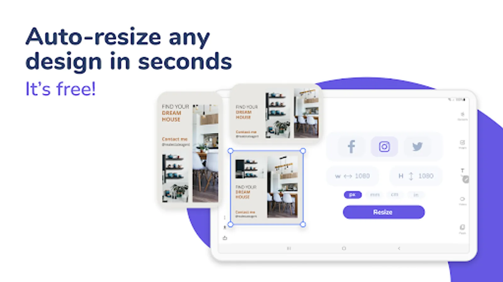 • One-click Resizer: resize your final design into other social media formats quickly.