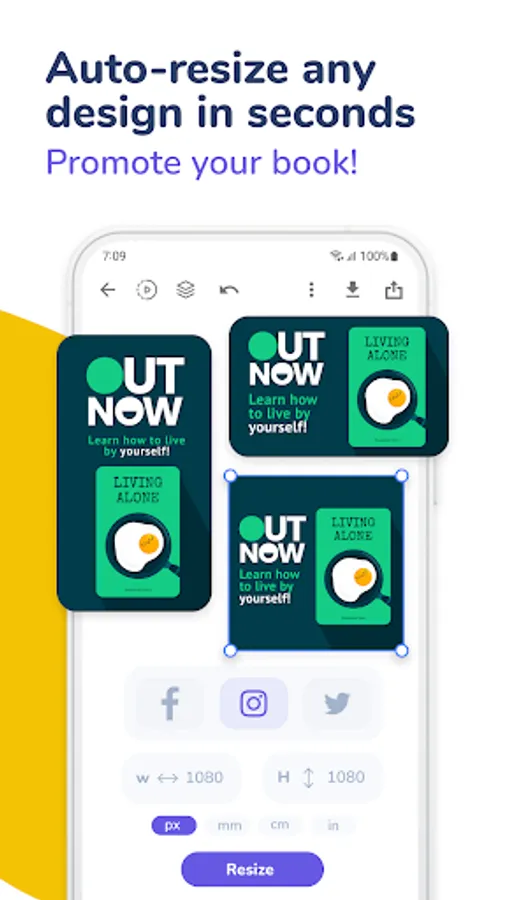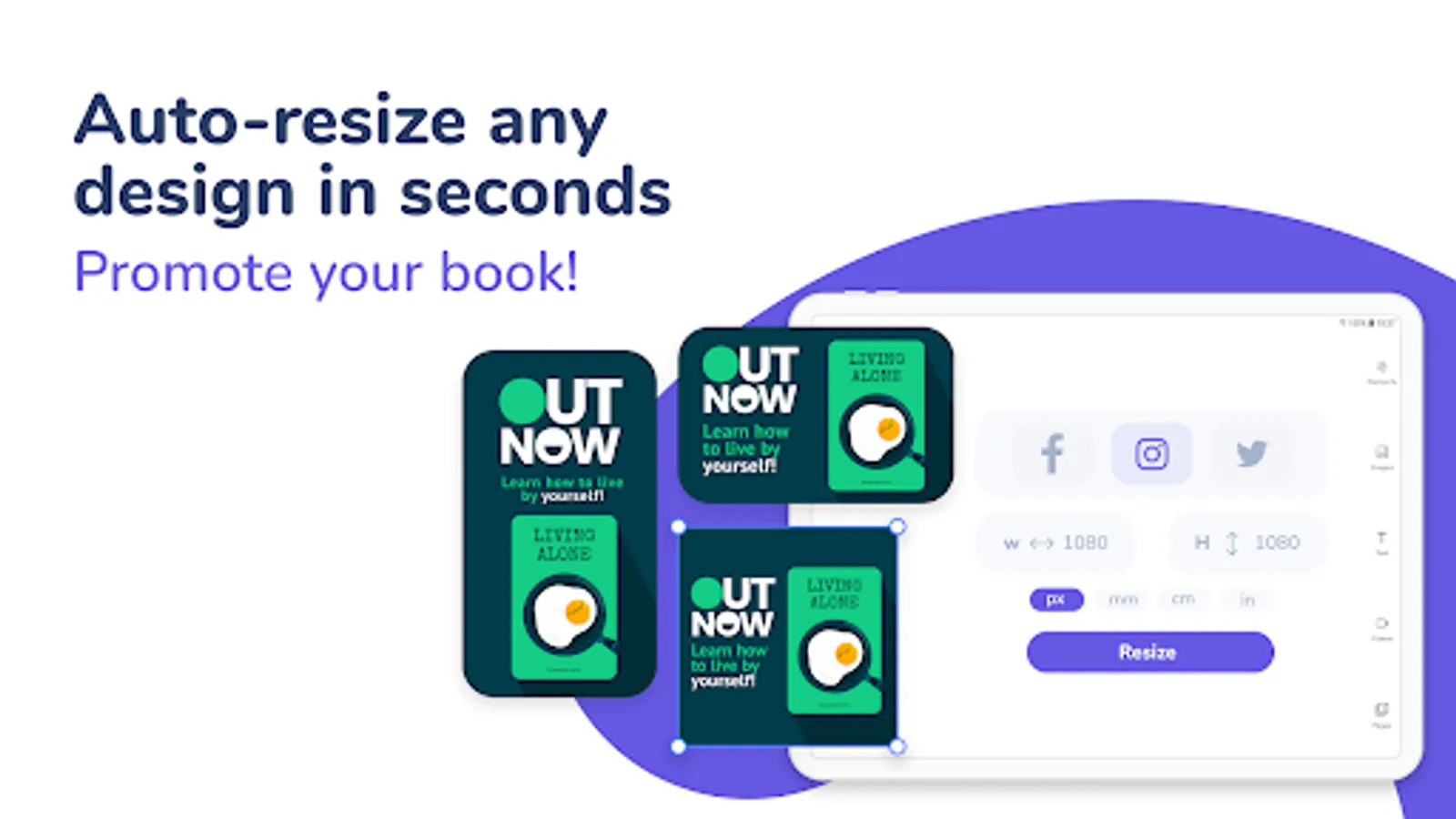 • One-click Resizer: Are you already finished with your cover? Just resize it and use it on social media straight away.