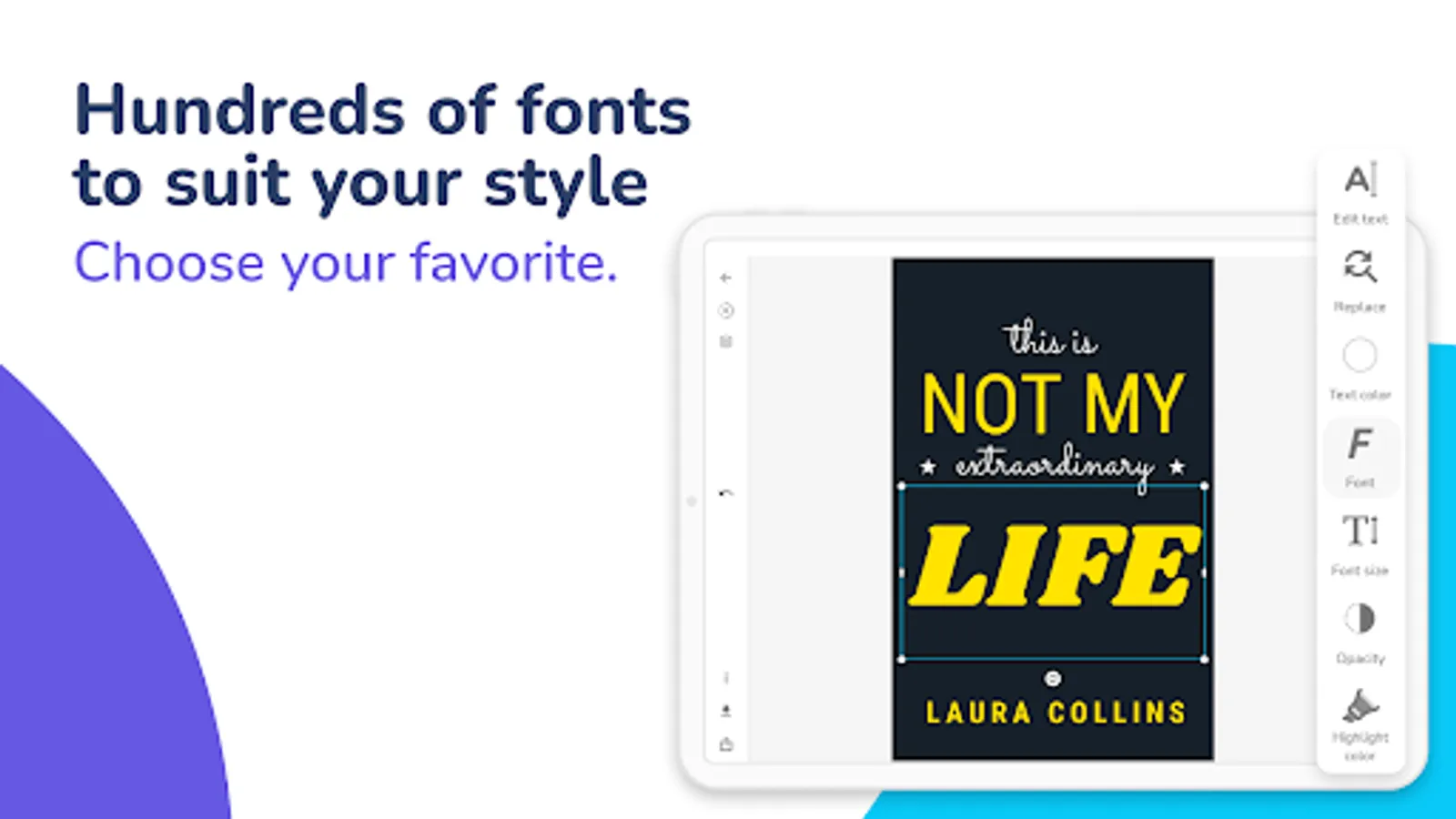 3. Add & Edit text: highlight, change fonts, spacing and colors.