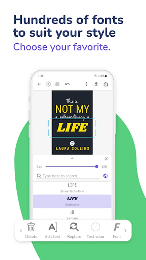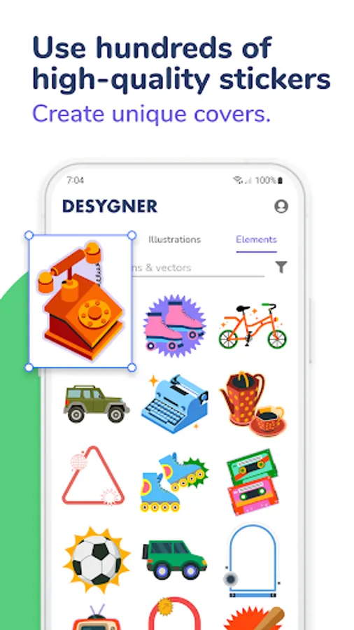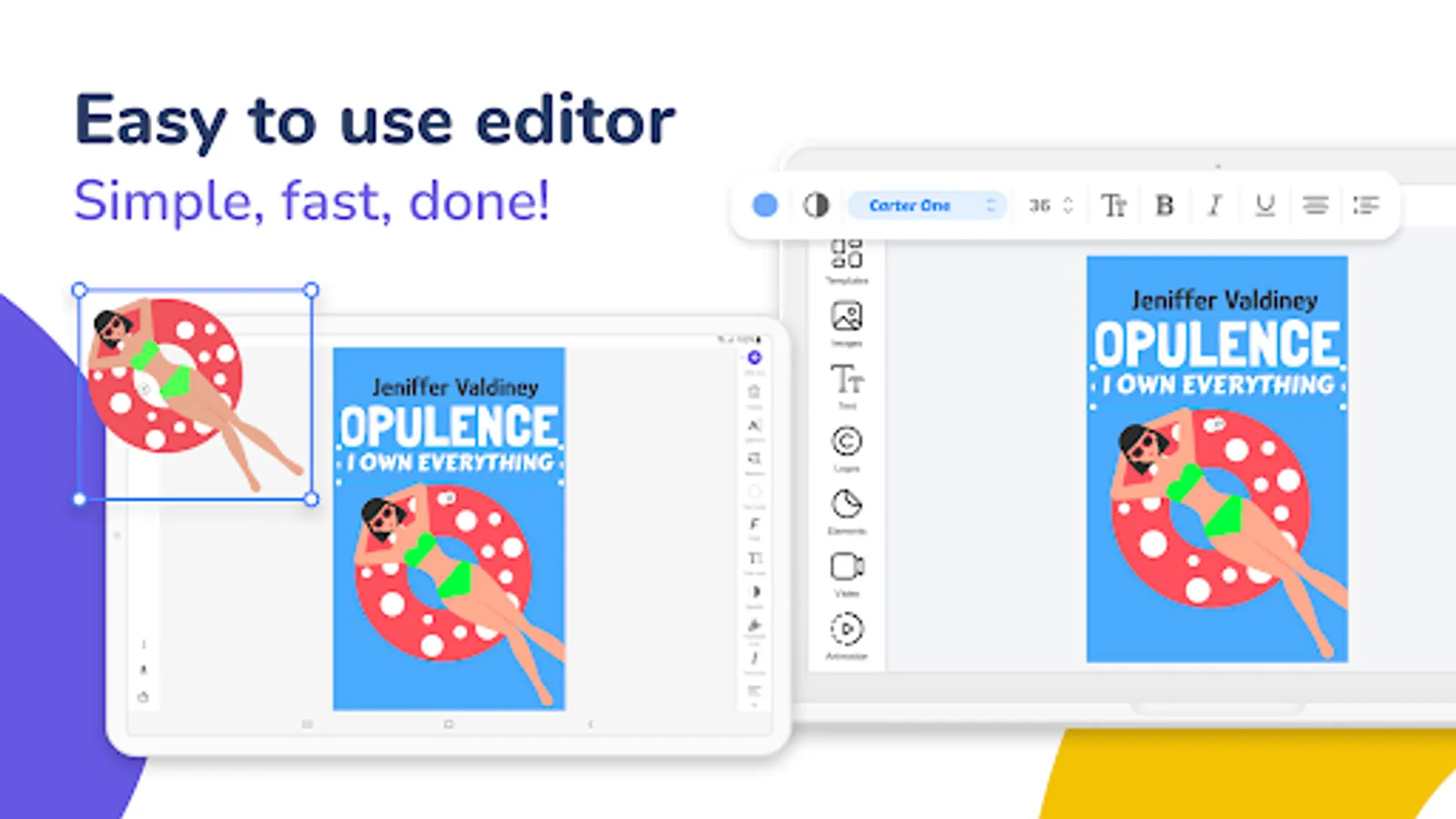 2. Easy add elements: Add & edit text, icons, shapes and stickers in any way you want.