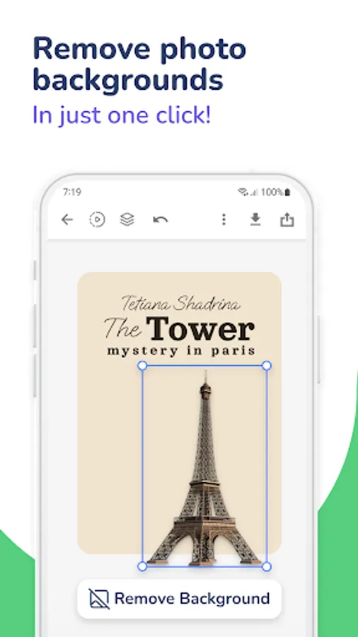 • One-click Background Remover: remove the background of images & create awesome collages.