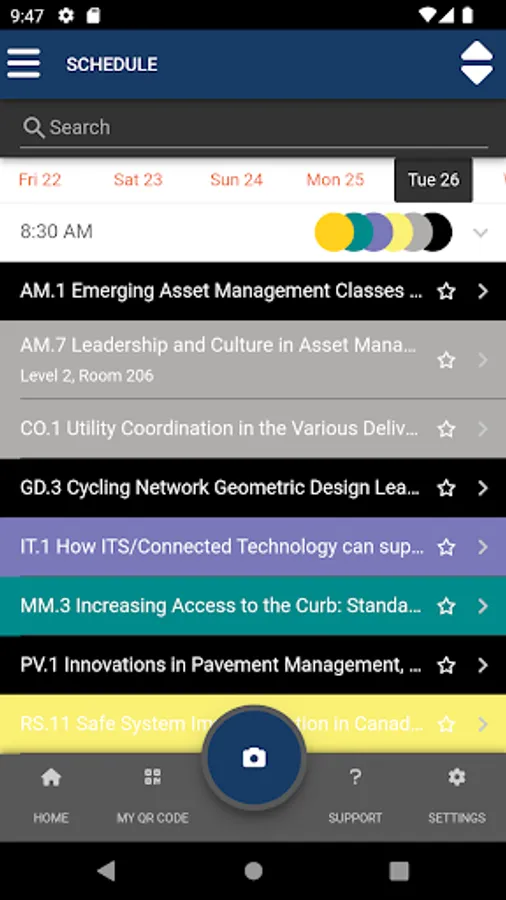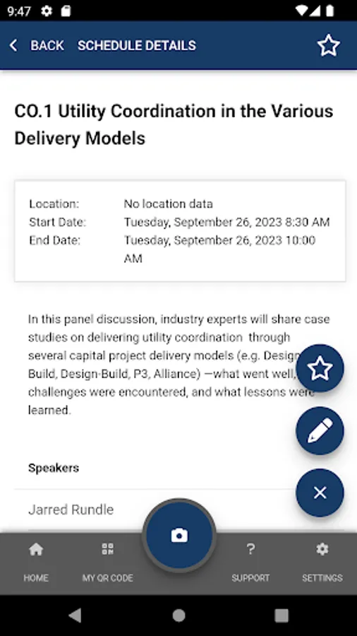 For contact sharing, scan the QR Code on the contact’s badge. Scanned contacts will save basic name information at the time of the scan. Users can select qualifiers or add notes for their scans. The app also allows the user to view, edit, or delete all scanned contacts.