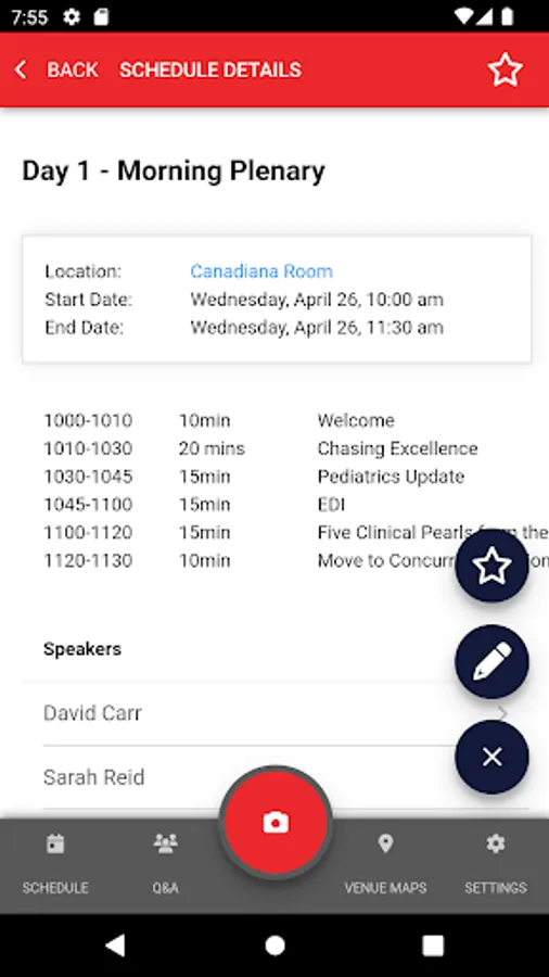 For contact sharing, scan the QR Code on the contact’s badge. Scanned contacts will save basic name information at the time of the scan. Users can select qualifiers or add notes for their scans. The app also allows the user to view, edit, or delete all scanned contacts.