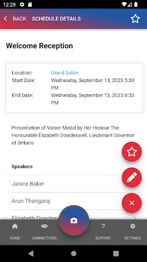 For contact sharing, scan the QR Code on the contact’s badge. Scanned contacts will save basic name information at the time of the scan. Users can select qualifiers or add notes for their scans. The app also allows the user to view, edit, or delete all scanned contacts.