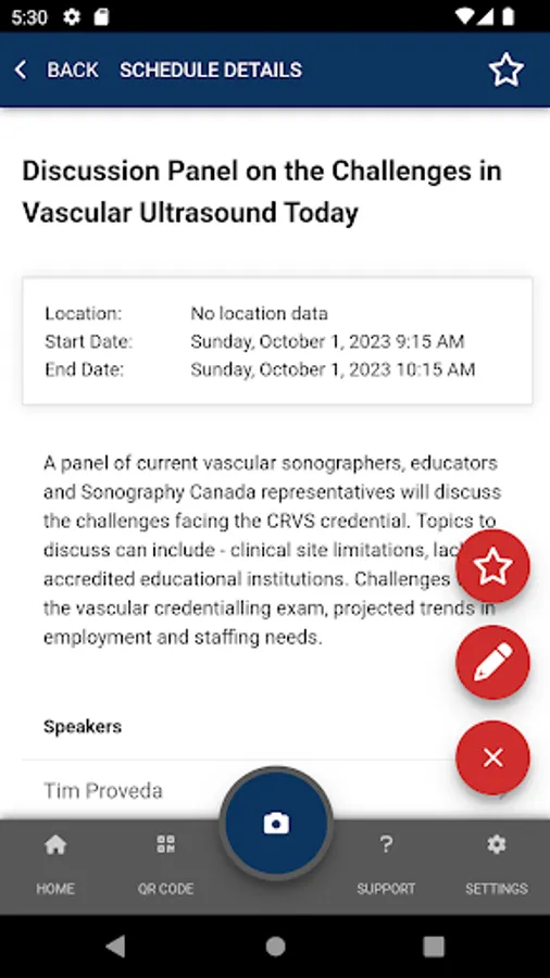 For contact sharing, scan the QR Code on the contact’s badge. Scanned contacts will save basic name information at the time of the scan. Users can select qualifiers or add notes for their scans. The app also allows the user to view, edit, or delete all scanned contacts.