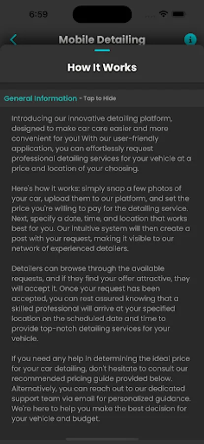 Our app makes it easy to connect with detailers, ensuring you get quality service at a price you're happy with. Save time and money, and keep your car looking its best with our convenient detailing solution!