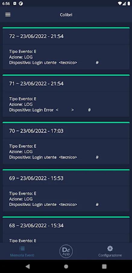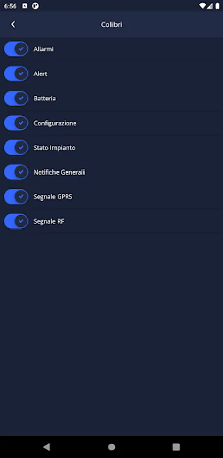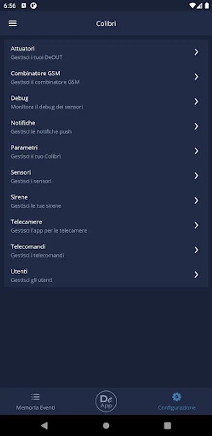 Application for the management of the anti-intrusion system of the Colibrì series.