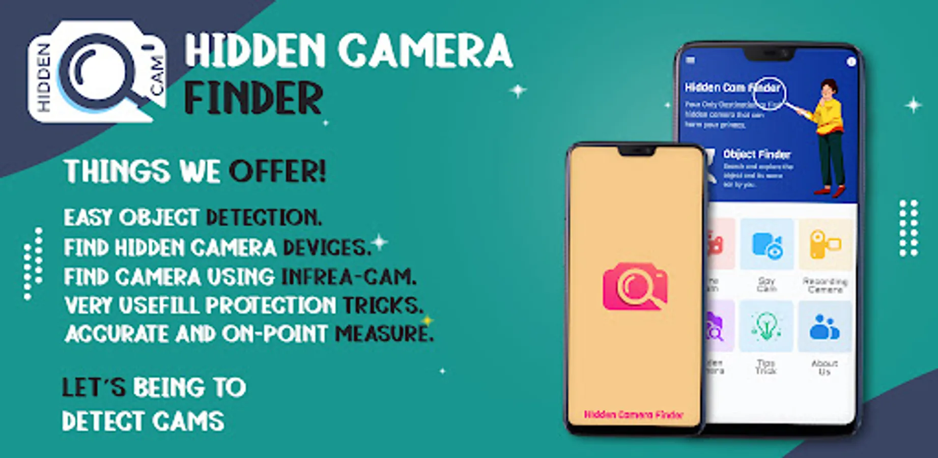 This Hidden Camera Detector easily detects hidden camera and microphones. It allows its users to detect hidden camera and microphone just by using an android phone. Hidden Camera Detector is the solution to privacy. It is free to download and is a great option to detect hidden camera. It detects hidden devices easily.