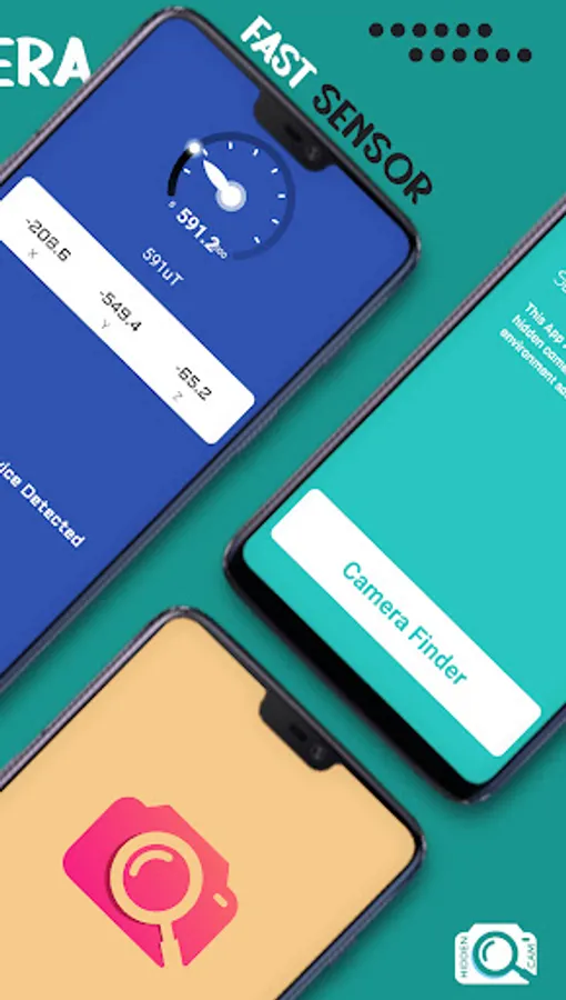 This Hidden Camera Detector or camera finder application works as a magnetic sensor that analyses the magnetic activity around the device. If a magnetic activity looks like that of the camera, this application can detect it by four methods. Hidden camera detector by graph the graph value will rise, camera finder by calibration, detect hidden camera by android mobile camera, hidden camera finder by the Sensor