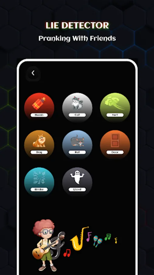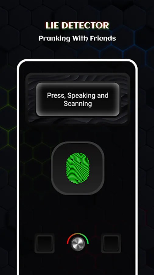 With Lie Detector You can show the result to prank your friends! you Press the volume key when scanning for enjoying. Example (volume+ for truth, volume- for lie).