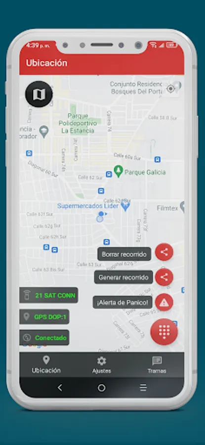 Detektor GEO's main function is to replicate the functionalities of a conventional GPS and use your Smartphone to measure and transmit different variables, as an AVL monitoring device would do.