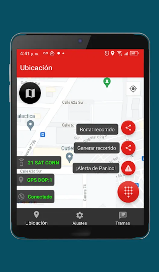 Through Detector GEO it is possible to send an immediate transmission emergency alarm to report an eventuality. In the location tab is the button Panic Alert! pressing it will indicate sending a panic alert.