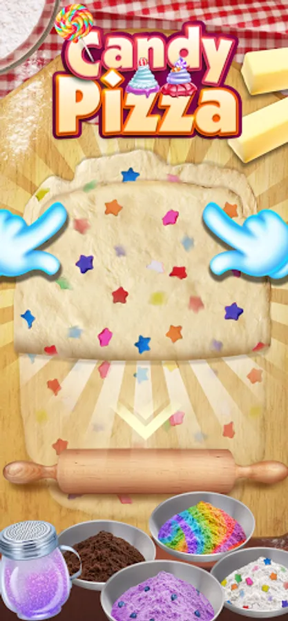 Realistic Cooking Tools & Steps! Select Pizza Dough Flavor Base. There are plenty of options from Confetti to Rainbow. Next, Mix Ingredients, Refrigerate Dough, Roll Dough using a Rolling Pin, Sprinkle Glitter Flour, Fold in Half, Roll again, Pinch Dough and place Pizza Dough in wood burning Oven.