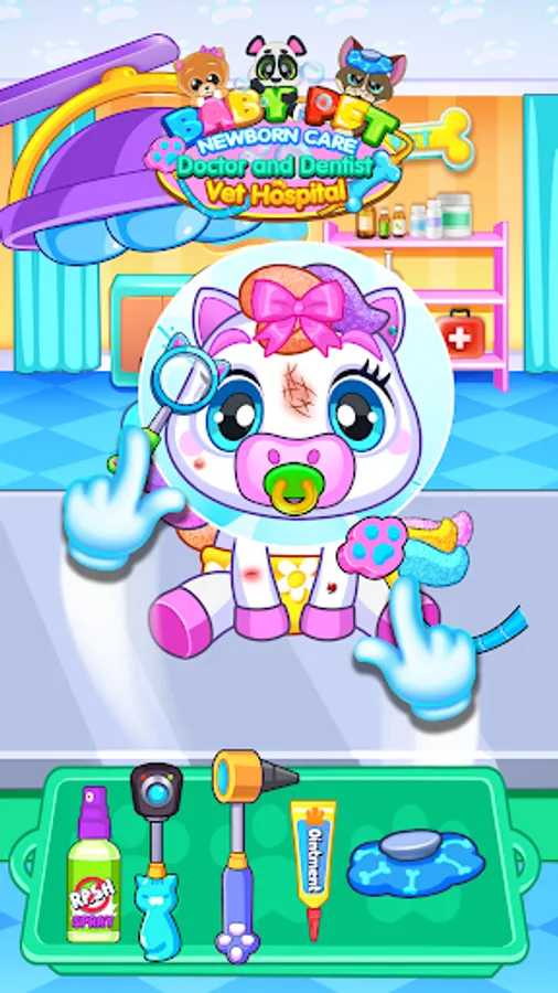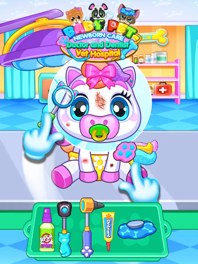 Baby Pets Newborn Care is here! Be a Veterinarian Doctor and Dentist with Baby Animals! Feed and Groom 6 Newborns! Help them Feel Better!