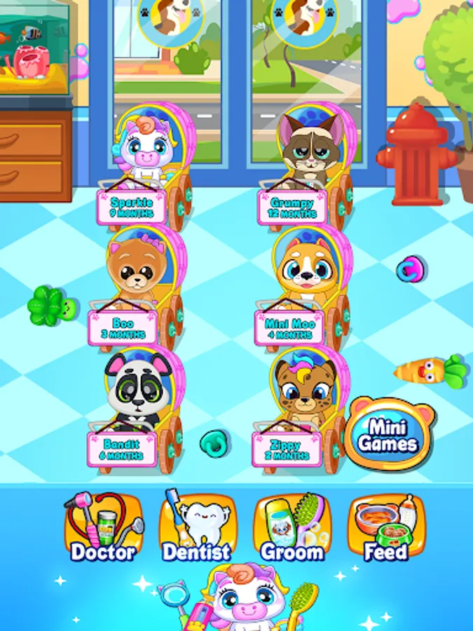 Select your Baby Pet and become a Vet Doctor and Dentist treating Fleas, Ticks, Rabies, Rashes, Cavities, Stinky Breath and more!