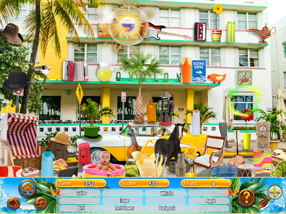 Find Hidden Objects in Florida! MEGA fun Seek and Find game with 50+ Levels! Explore Famous Destinations like Miami Beach, Orlando, Daytona, Boca Raton, LegoLand, Swamp Land and more! Let the Brain Game begin!