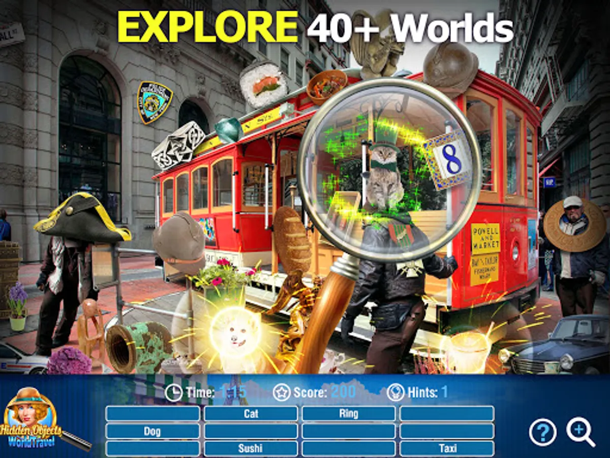 40+ Unique Hidden Objects games ALL in One MEGA App! 1000’s of Hidden Objects in Real Photos Celebrating Famous USA Cities, Worldwide Travel, Holidays, Animals, Food and Adventure! 1000’s of Levels! MEGA Brain Vacation in 1 Game!