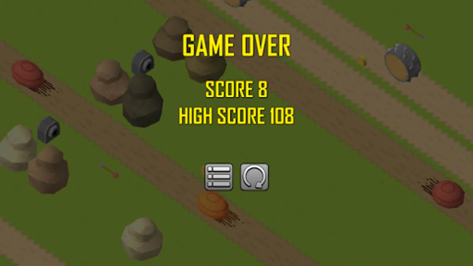 Click to jump and turn left and right to cross the road and water and avoid dangerous obstacles.