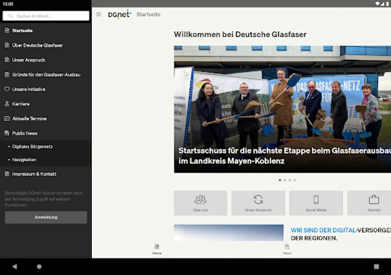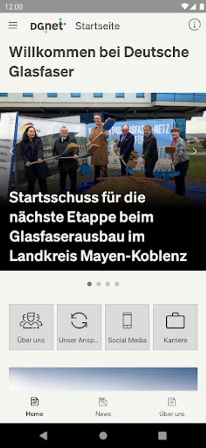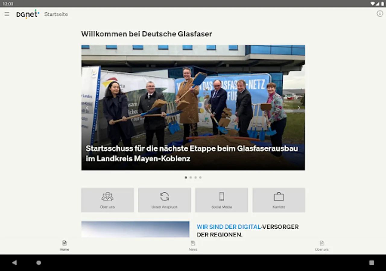 In our DGnet App you will find information about the DeutscheGlass Group - from the latest news and press releases to exciting facts about the fiber optic expansion in the regions to insights into the working world at DeutscheGlass.