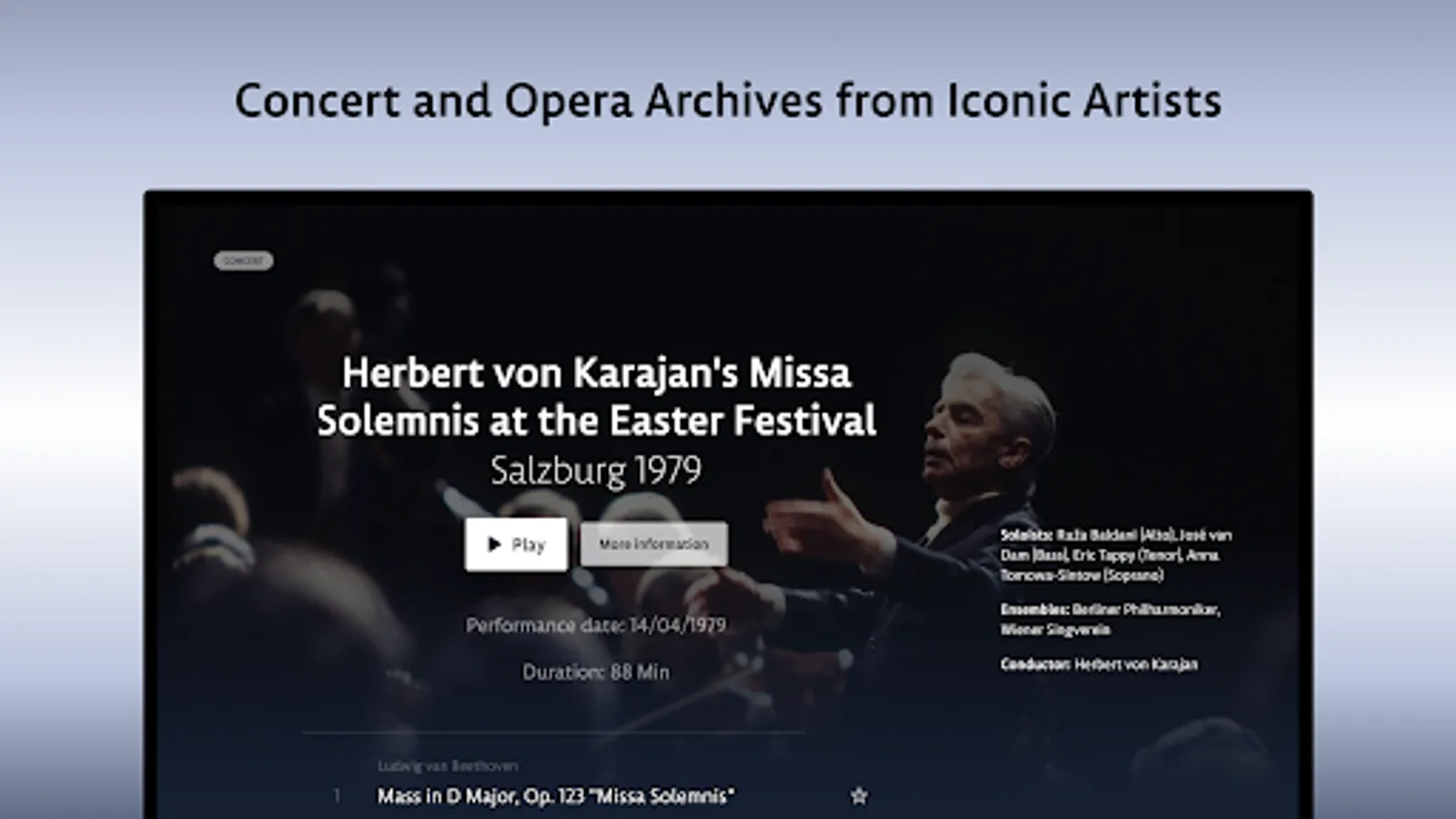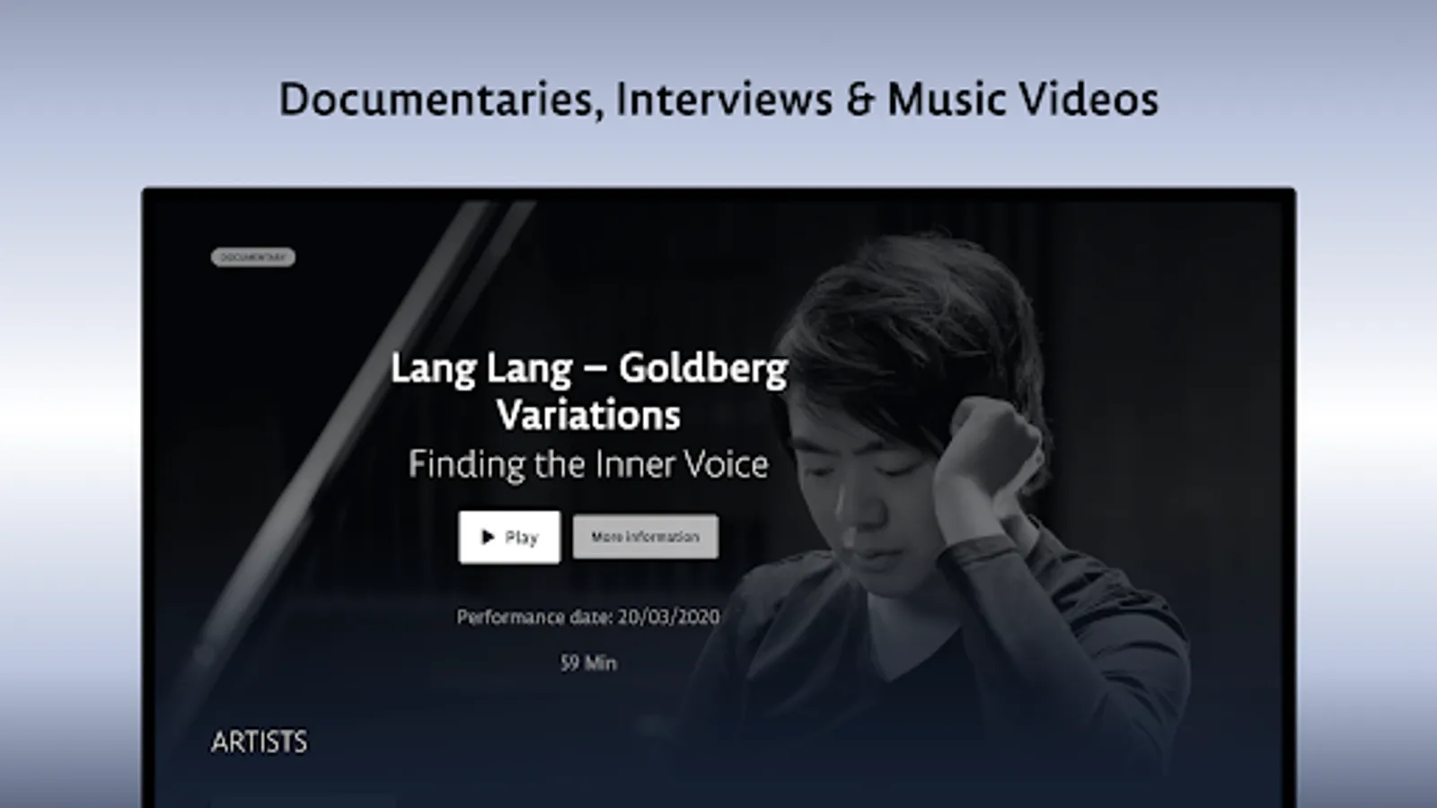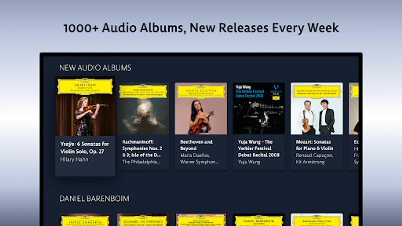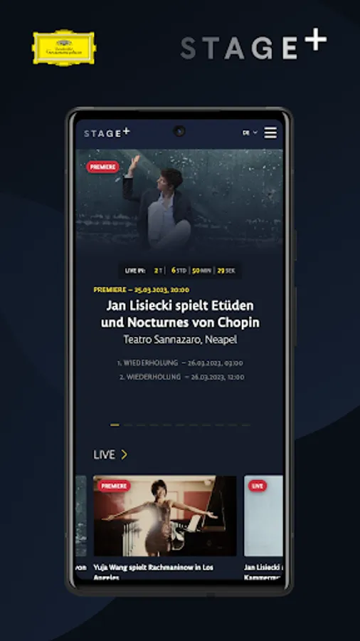 Enjoy livestreams direct from the world's most famous concert halls and opera houses over 50 times a year, as well as exclusive interviews, documentaries and music videos with Deutsche Grammophon artists like Lang Lang, Anne-Sophie Mutter, Vikingur Ólafsson, Hilary Hahn, Daniel Hope, Andris Nelsons and many more. At STAGE+ you will find new audio and video releases every week and a selection of over 1000 curated albums. Our extensive archive, full of historical treasures from the greatest musicians, orchestras and conductors, is also available to you as a Premium user.