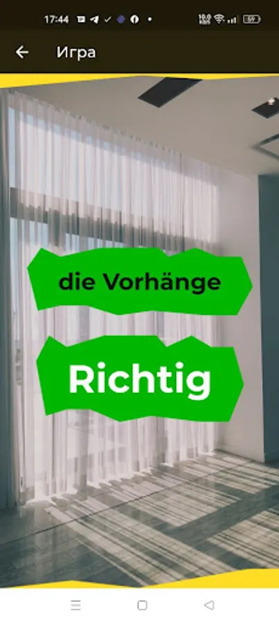 The app shows you a German word without an article, with a catchy picture: visual memory is trained.