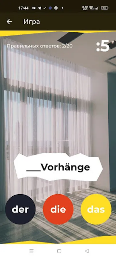 At the end of one game of 20 words, you will see the total number of correct answers and you can try again, but with new vocabulary.